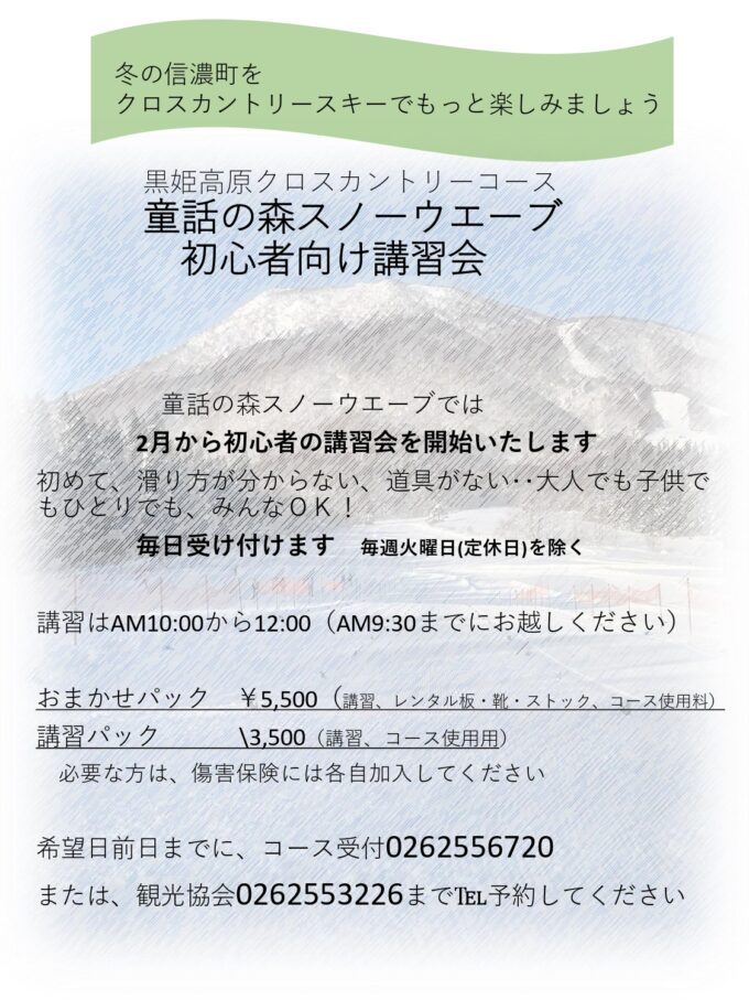 2月から童話の森スノーウェーブにて初心者向け講習会を開催いたします!