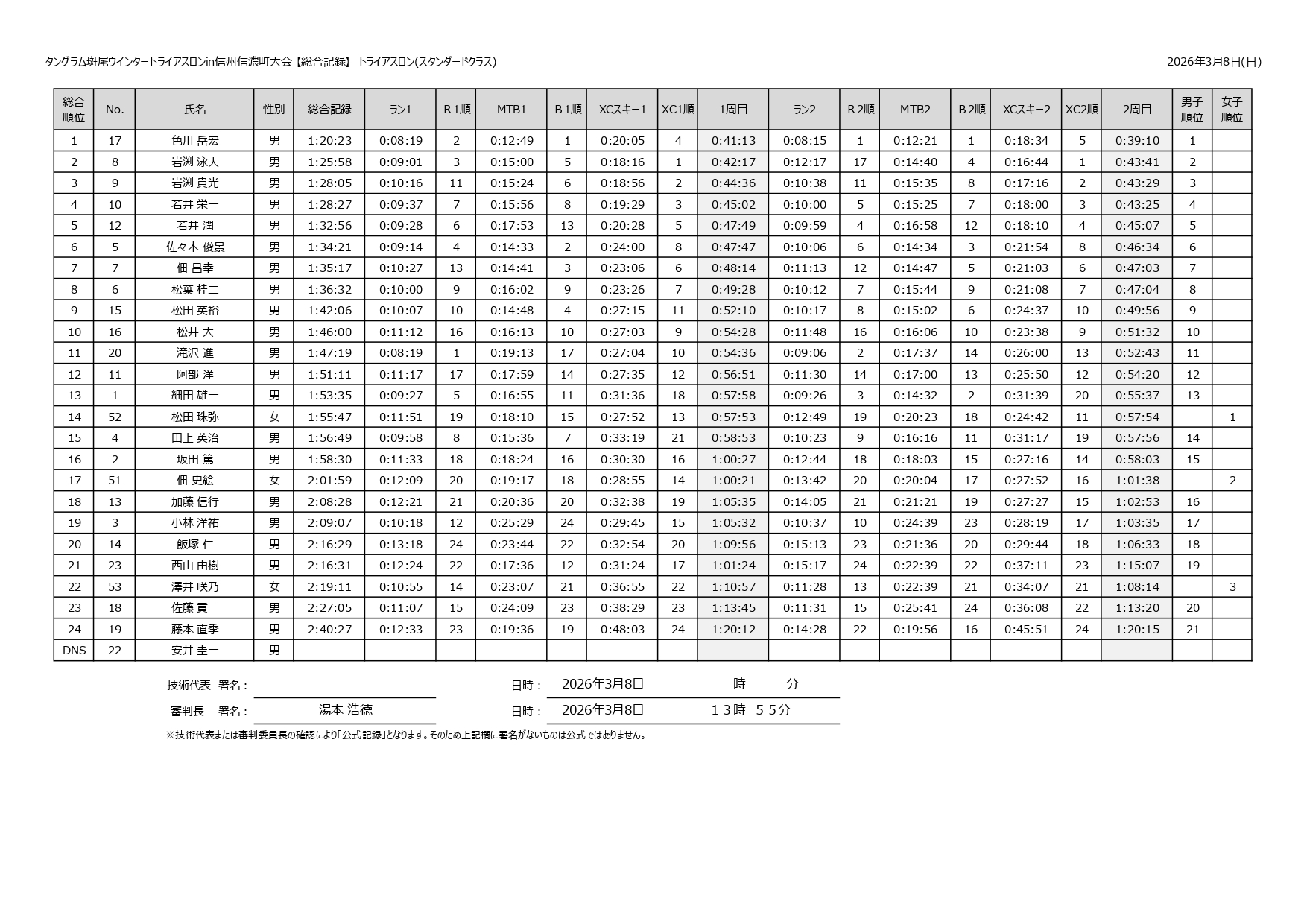 そして、公式のリザルトが発表されました!
