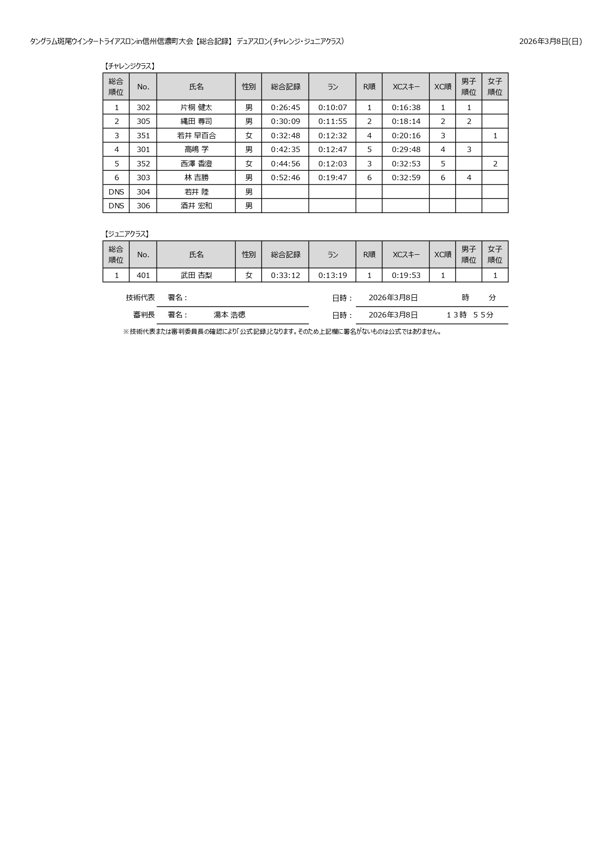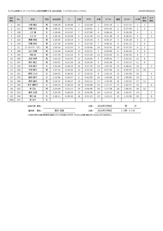 【リザルト】2026タングラム斑尾ウィンタートライアスロンin信州信濃町