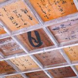 間口5.4m、奥行は4.5mの小さなお堂で、その天井には俳諧寺を訪れた金子兜太氏など著名な俳人・文人たちの俳句筆跡が残されている。
