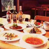 スープ、サラダ、魚料理、肉料理、デザートと続き、ワインやシードルなど食事に合わせたお酒も各種用意している。